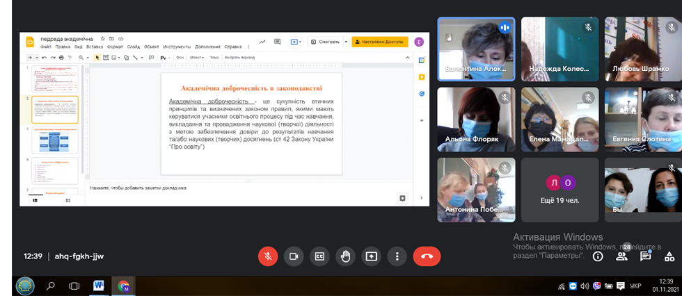 01.11.2021в Початковій школі №9 проведено педраду "Академічна доброчесність як принцип успішного функціонування закладу освіти". Учасники педради наголосили на важливості розбудови культури академічної доброчесності, визначили можливості для розвитку закладу з позиції доброчесності та напрями подальшої роботи. Творчими групами розроблено ефективні стратегії для підсилення культури академічної доброчесності .